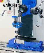 El cabezal de la máquina está guiado con precisión por una guía de cola de milano mediante un motor de recorrido con husillo de altura regulable y de guía precisa. De esta forma se obtienen importantes ventajas de estabilidad durante el fresado en comparación con máquinas guiadas por columna. Dispositivo de tallar roscas integrado con inversión del sentido automático al alcanzar una profundidad preajustada.